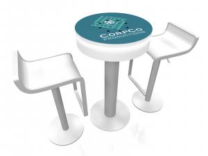 The RE-2098 is a clean, simple, and effective design for the exhibitor who needs to showcase their products while meeting with clients in a casual setting. The 20 ft. backwall has expansive graphic opportunities, and the insets are ideal for showcasing any product, not just clothing. The center section is a walk-in closet, perfect for samples, literature, or to keep your valuable secure. The RE-1228 Reception Counter includes locking storage and aisle-forward graphics. The RE-2098 is an attractive rental display that's flexible enough to accommodate almost any exhibitor.