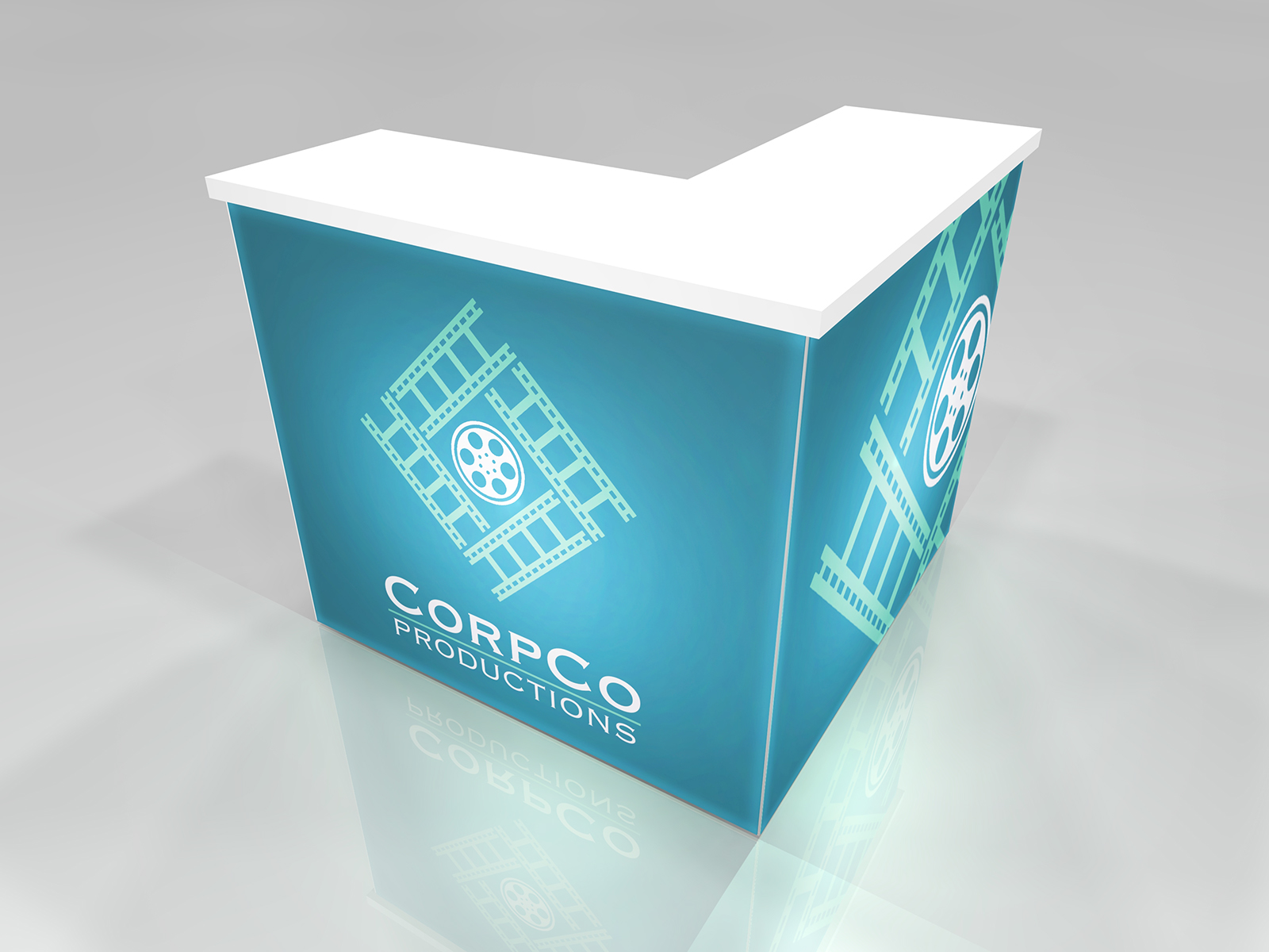 Quite often, a few custom elements added to the design can give the entire design a custom look even if it’s as simple as some colorful laminated workstations, shelves, or a reception counter. Custom laminated soffits and backlighting are also nice touches that are inexpensive and well worth the investment. As a bonus, if you re-rent the same exhibit, your second rental will most likely be less expensive, since your first rental covered the cost of those custom components.