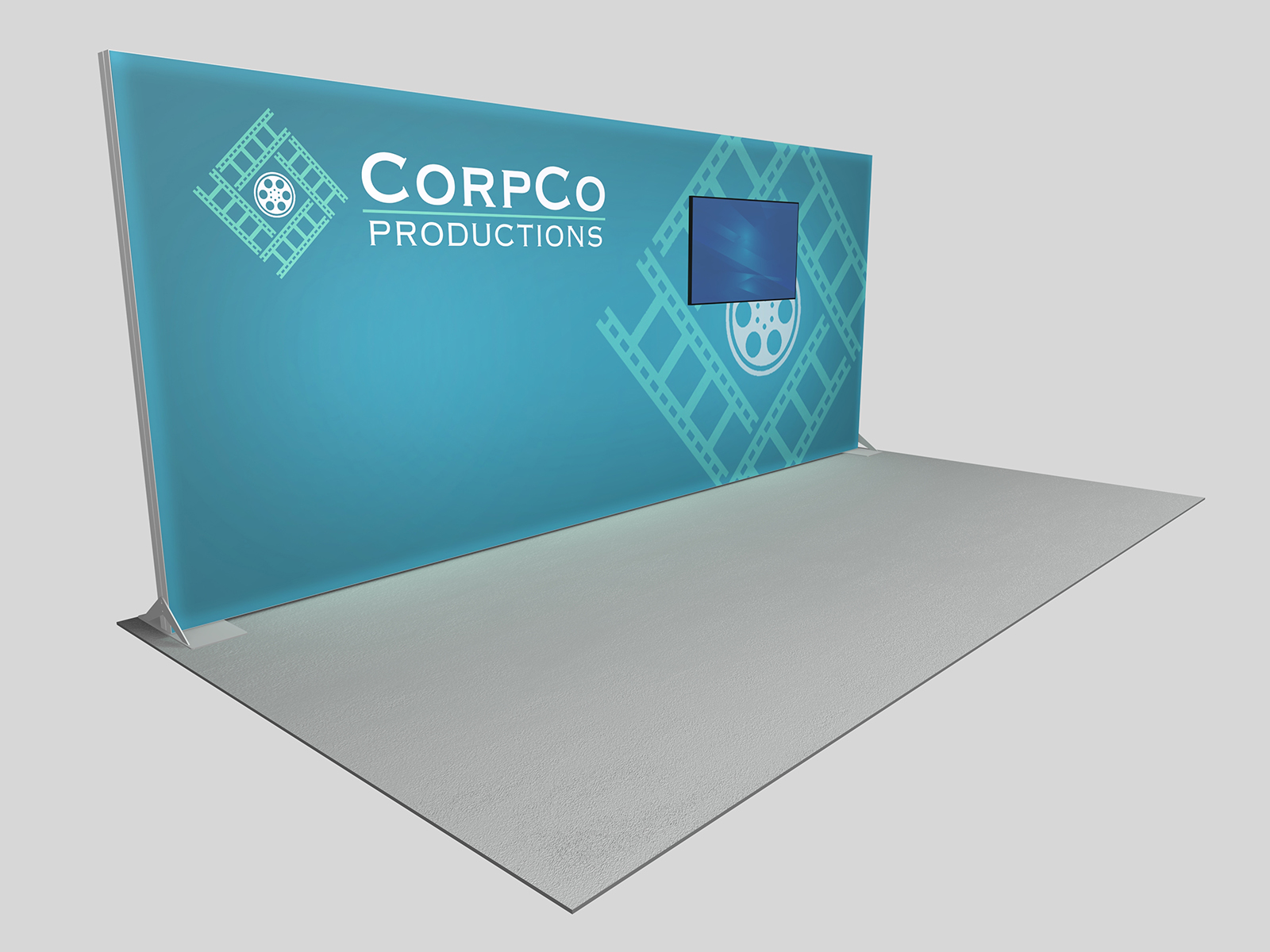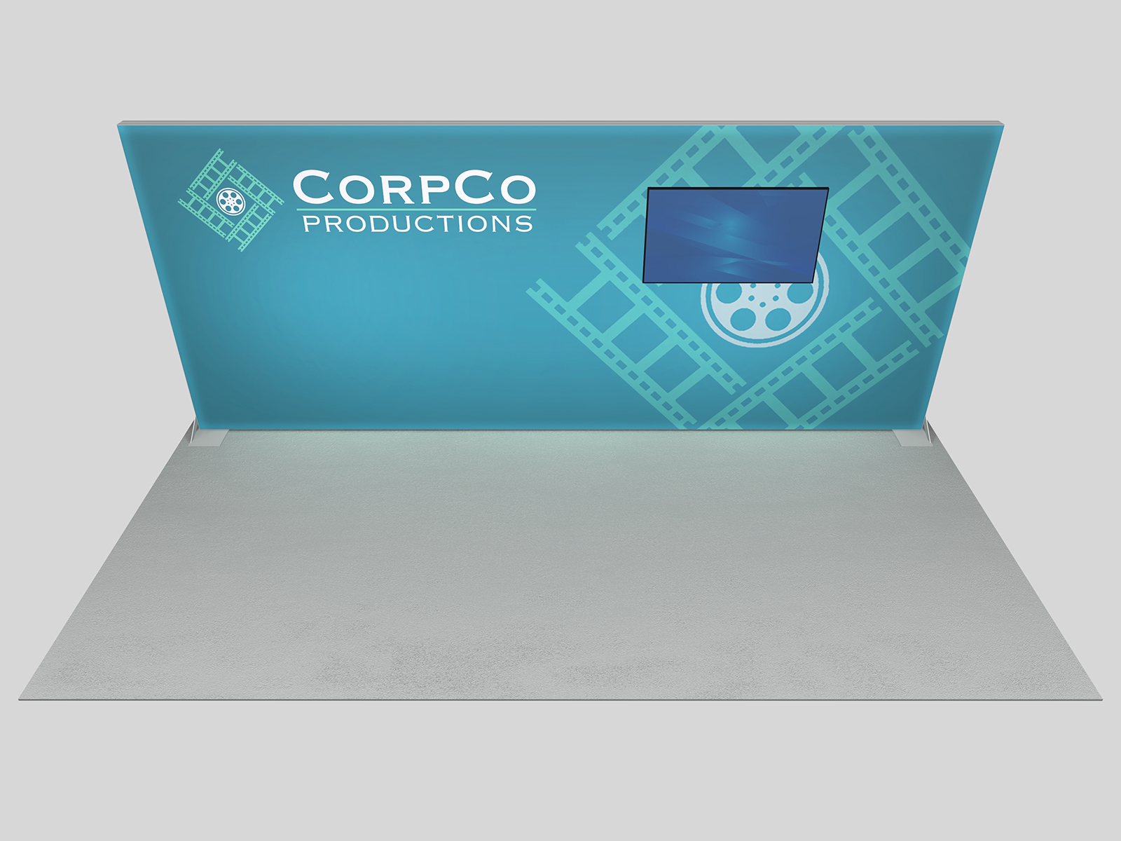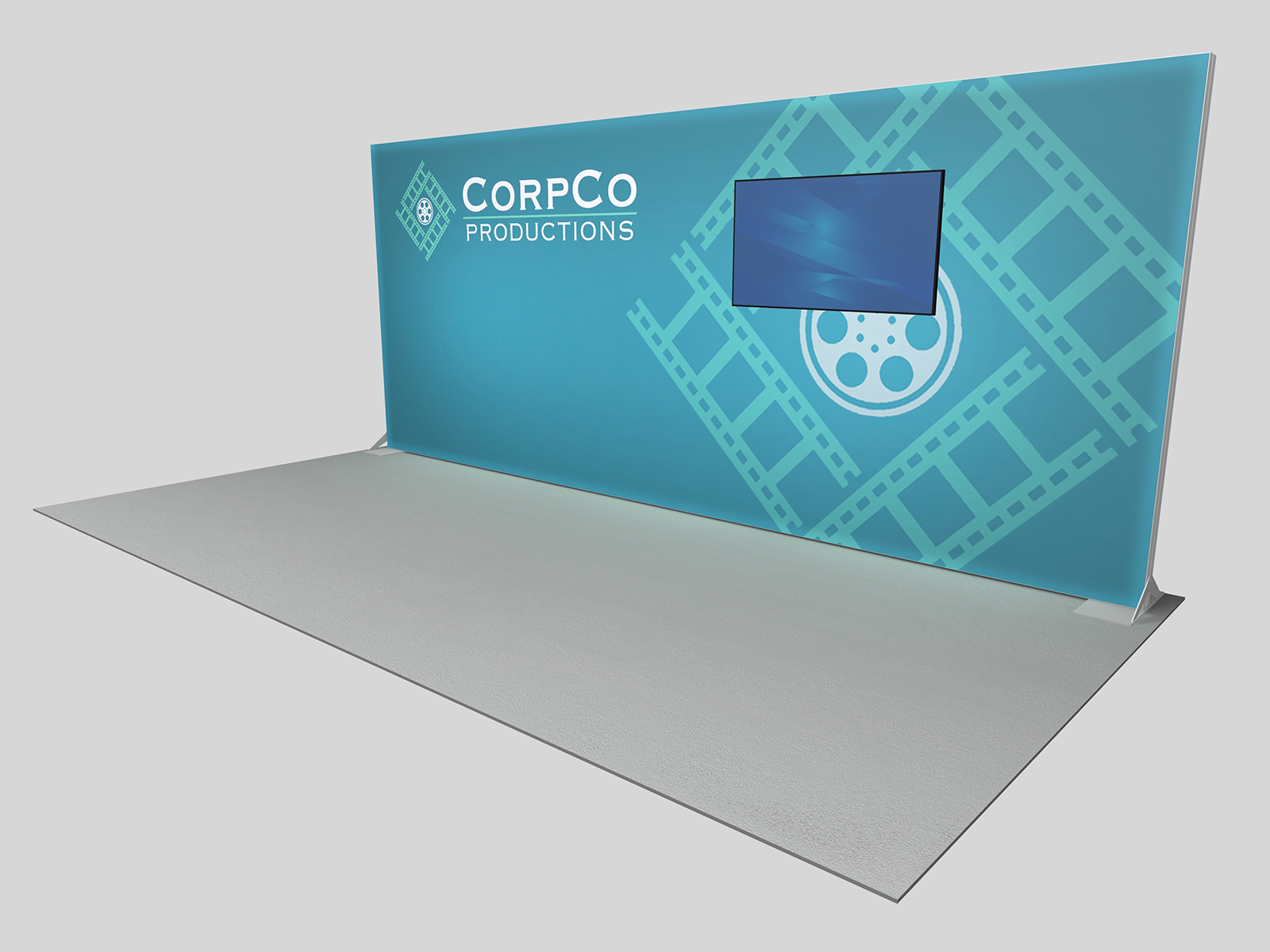 Quite often, a few custom elements added to the design can give the entire design a custom look even if it’s as simple as some colorful laminated workstations, shelves, or a reception counter. Custom laminated soffits and backlighting are also nice touches that are inexpensive and well worth the investment. As a bonus, if you re-rent the same exhibit, your second rental will most likely be less expensive, since your first rental covered the cost of those custom components.