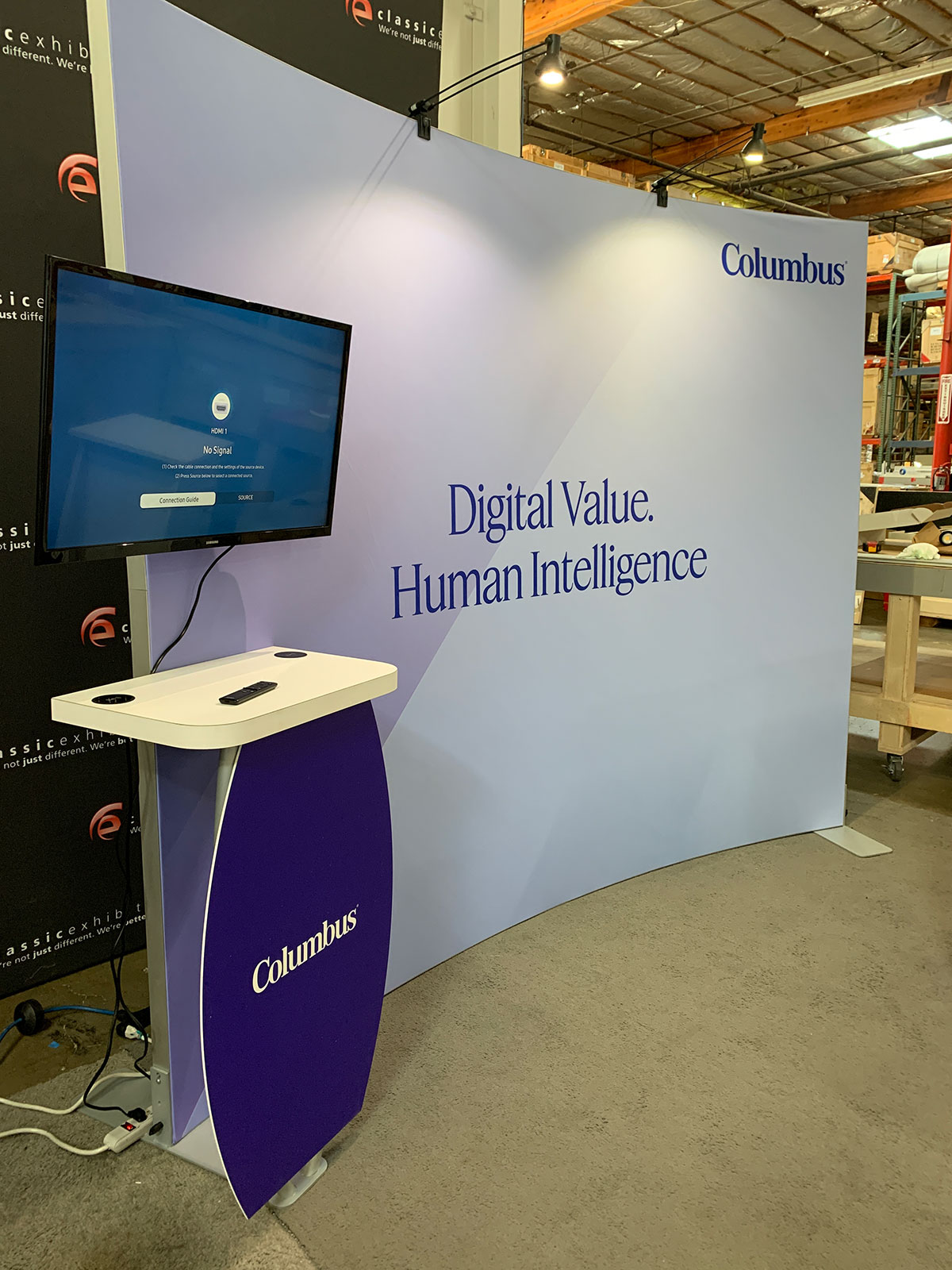 Station Table, Large Monitor Mount, 43" Monitor, SEG Backlit Fabric